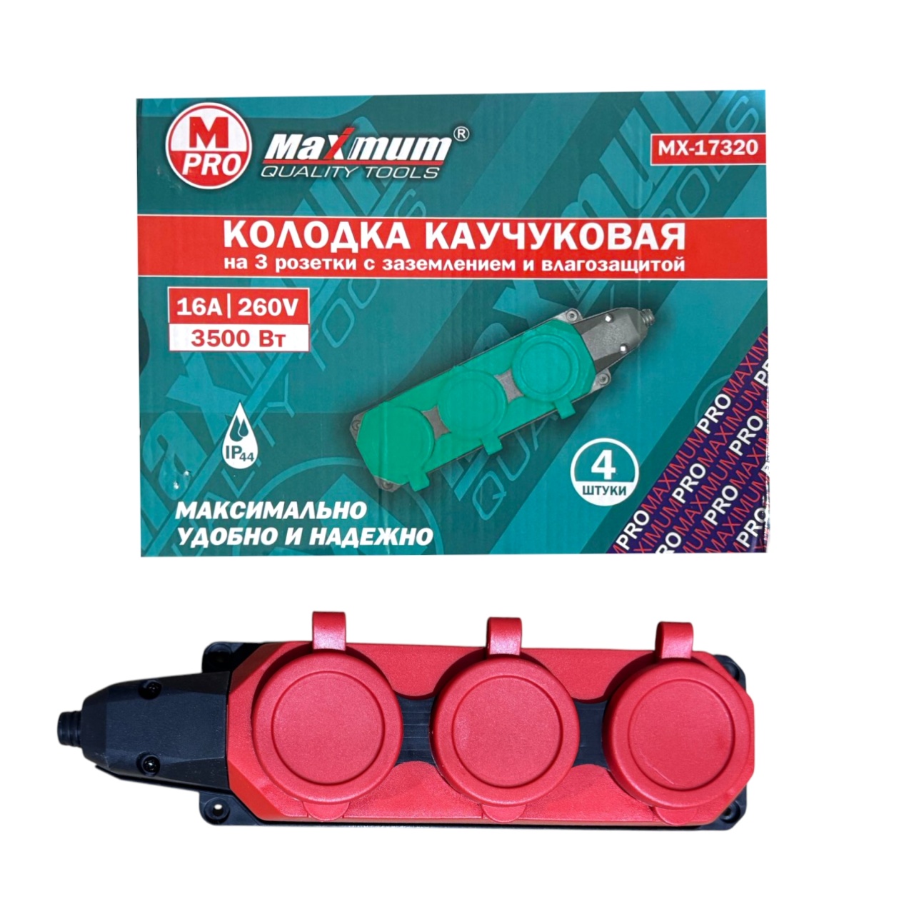 Колодка "MAXIMUM" MX 17320 — это профессиональное, безопасное и долговечное решение для работы в тяжелых условиях. Ее ключевые преимущества — высокая степень защиты IP44, прочный каучуковый корпус и способность выдерживать мощную нагрузку до 3500Вт.