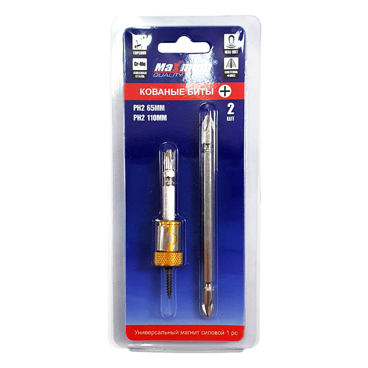 Набор бит кованых PH2, 65 мм /110 мм, с универсальным силовым магнитом 2 штуки, «MAXIMUM» предназначен для ручного и механизированного инструмента.